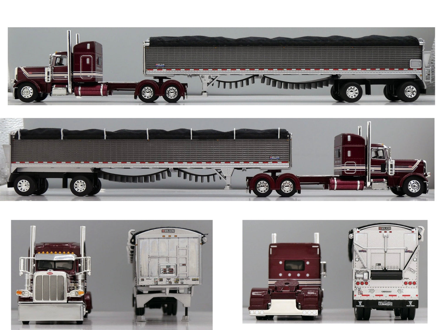 #60-2225 Maroon Peterbilt 389 w Silver Belt Trailer