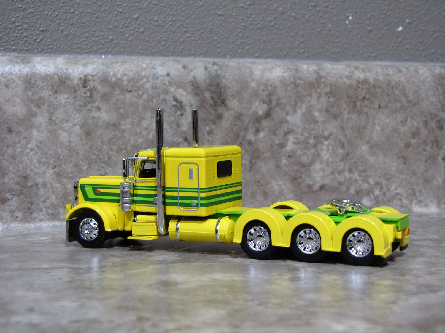 DCP 1/64 Peterbilt 389 Yellow Green 48" Flattop Sleeper Tri-Axle Semi Truck